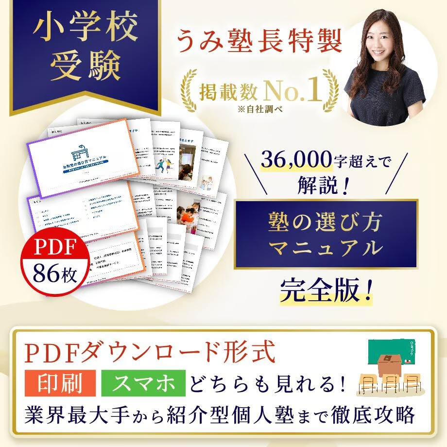 「どこの塾にすればいいの?」とお迷いの方も、「塾を変えた方がいいかも?」とお悩みの方も、ぜひこちらのマニュアルを参考に、お子さまにぴったりな塾を探していただけたらと思います。