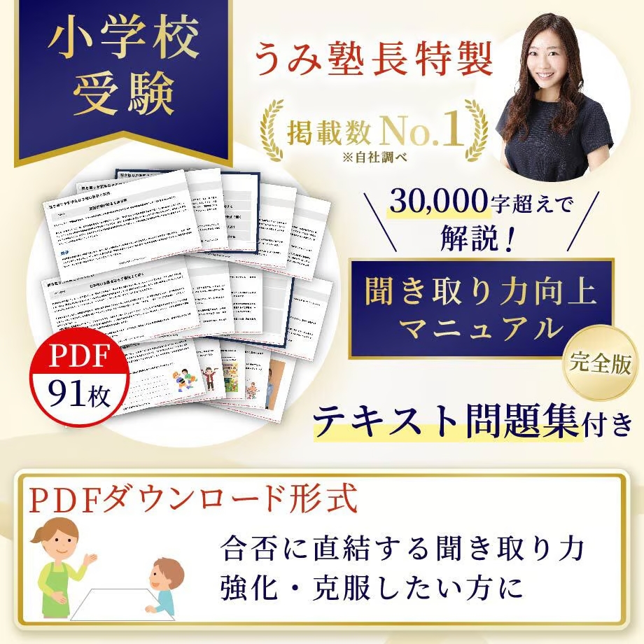 お話をきちんと聞けることは、小学校受験の初歩の初歩といっても過言ではありません。また、相手の話をしっかりと聞けることは、お子さまの今後の人生においても役に立ちます。ぜひ本記事でご紹介した教材をご活用いただき、聞き取り力をアップするためのトレーニングをしていただけたらと思います。
