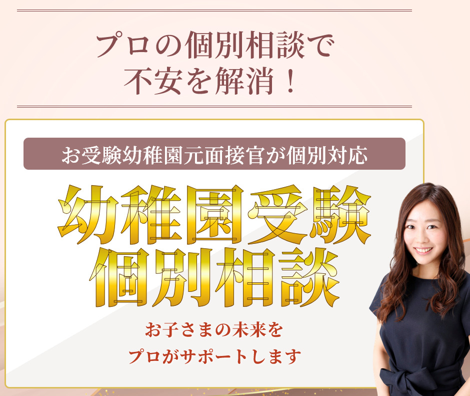 【幼稚園受験】個別相談(1時間) 商品番号:pre_consultation01 【幼稚園受験】個別相談(1時間) 【幼稚園受験】個別相談(1時間) ¥19,800 ¥10,000(税込) 数量 \プロが個別でアドバイス/ 小学校受験個別相談 個別相談では、こんなことをサポートします。☑️お子さまの現状を分析模試の結果や日々の学習状況を元に、どこに課題があるのかを明確にします。☑️家庭学習の具体的な進め方を提案ご家庭で親御様が無理なく取り組める、効率的な学習プランをアドバイスします。スケジュールの組み立て方や教材の選び方も詳しくお伝えします。☑️志望校に合わせた対策を解説志望校ごとの出題傾向に合わせた対策ポイントをお伝えし、最適な勉強法を提案します。☑️ご質問に全てお答えします家庭学習での具体的な不安や疑問にお答えし、「これから何をすれば良いのか」が明確になります。 分割払いをご希望の場合は、ご利用中のクレジットカード会社のマイページにて分割設定を行ってください。詳しい設定方法については、カード会社へお問い合わせいただくか、公式ウェブサイトをご確認ください。 PDFファイルの印刷は、ご自宅のプリンターをご利用いただくか、各社コンビニのマルチコピー機をご利用ください。 ・ローソン(外部リンク) ・ファミリーマート(外部リンク) ・セブン-イレブン(外部リンク) ホーム » 【幼稚園受験】個別相談(1時間) こちらの商品もよく見られています ②思考【小学校受験】教え方解説付き!『四方図』教科書と問題集(対象年齢5歳〜) ¥5,980(税込) ⑦数量【小学校受験】教え方解説付き!『和差』教科書と問題集(対象年齢4歳〜) ¥5,980(税込) 🎓小学校受験言語完全制覇8冊セット 【言語コンプリート・マスターセット】 ¥29,800(税込) ⑤知識知識【小学校受験・覚えるリストカード完全版】 ¥4,980(税込)