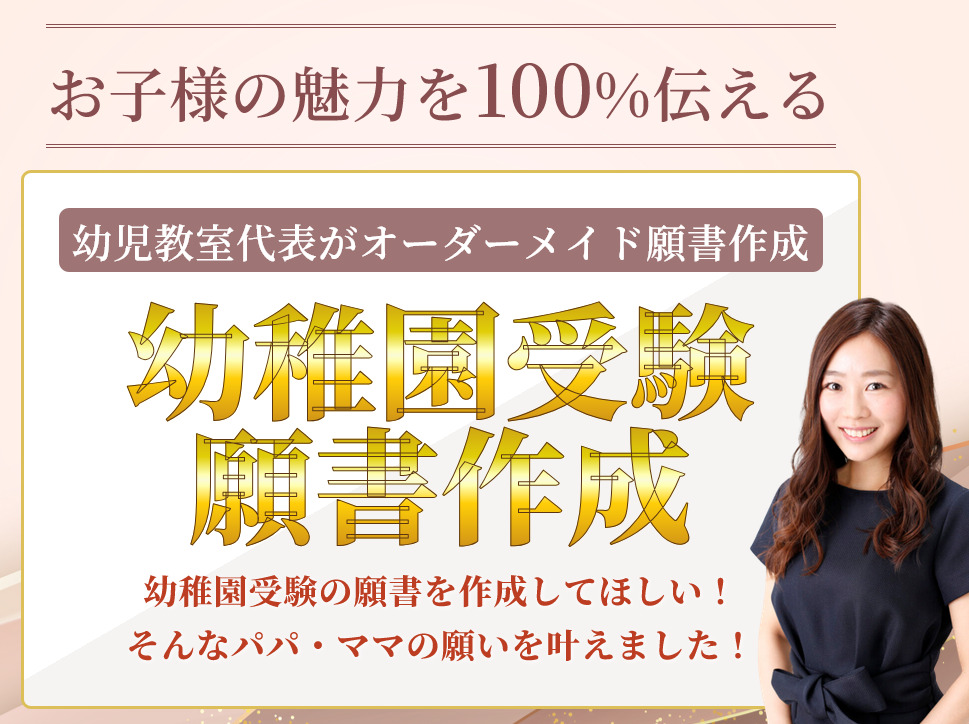 【幼稚園受験】願書作成代行(アンケートで作成の場合) 商品番号:kindergarten-application01 【幼稚園受験】願書作成代行(アンケートで作成の場合) 【幼稚園受験】願書作成代行(アンケートで作成の場合) ¥69,800(税込) 数量 \幼稚園の願書をプロが作成/ 願書作成代行 「幼稚園入園願書作成代行」では、今年の願書配布がまだの場合、昨年度の内容でお作りします。もしも、配布後内容が変わっていた場合も無料で作り直しをさせていただきます。ご家庭の教育方針をお電話でしっかりとお伺いした後、願書を作成させていただきます。代筆をご希望の場合や、お急ぎの場合もご相談ください。お電話後、24時間以内の納品も可能です。面接対策では、オンラインで1時間しっかりと面接対策のレッスンを行います。2022年度願書を依頼された方の70%が面接対策をご利用いただいております。 分割払いをご希望の場合は、ご利用中のクレジットカード会社のマイページにて分割設定を行ってください。詳しい設定方法については、カード会社へお問い合わせいただくか、公式ウェブサイトをご確認ください。 PDFファイルの印刷は、ご自宅のプリンターをご利用いただくか、各社コンビニのマルチコピー機をご利用ください。 ・ローソン(外部リンク) ・ファミリーマート(外部リンク) ・セブン-イレブン(外部リンク) ホーム » 【幼稚園受験】願書作成代行(アンケートで作成の場合) こちらの商品もよく見られています 【幼稚園受験】願書作成代行(アンケートで作成の場合) ¥69,800(税込) 【幼稚園受験】願書作成代行(ヒアリングで作成の場合) ¥79,800(税込) 【幼稚園受験】プロ家庭教師(入会金) ¥19,800(税込) 【幼稚園受験】面接訓練(回答集のみ作成) ¥69,800(税込)